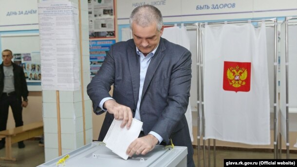 Сергей Аксенов на избирательном участке, 18 сентября 2016 года
