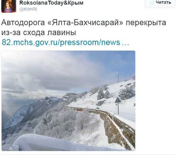 Кроме того, с Ай-Петри сошедшая снежная лавина парализовала проезд по одной из горных дорог, которая до сих пор не разблокирована.