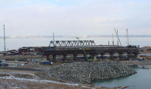 В сети появились свежие фото строительства моста через Керченский пролив в аннексированный Крым.