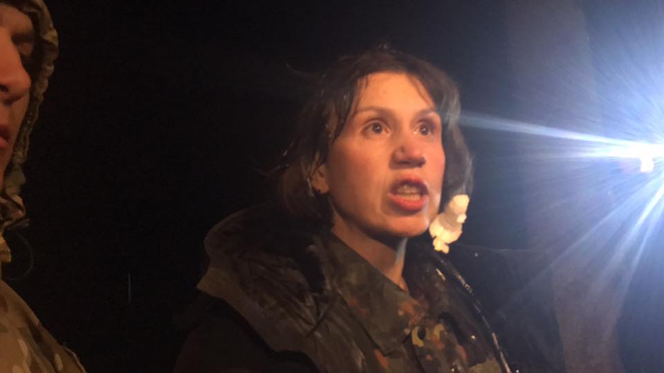 Народный депутат Татьяна Черновол прибыла в Кривой Торец для общения с участниками торговой блокады. Во время конфликта в нардепа полетели сырые яйца.
