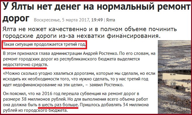 9. Оккупанты в Ялте признались, что ТРЕТИЙ год им не хватает денег на ремонт дорог. Говорят, что нужно в 6 раз больше того, на что способна россия