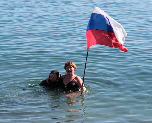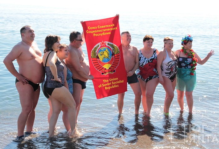 16. В Алуште прошёл заплыв моржей. Моржи притащили с собой тряпки СССР и триколоры. Этих уже не спасти