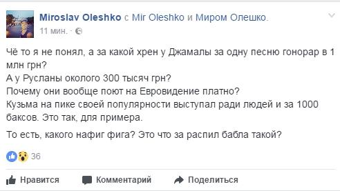 "Чё то я не понял, а за какой хрен у Джамалы за одну песню гонорар в 1 млн грн?