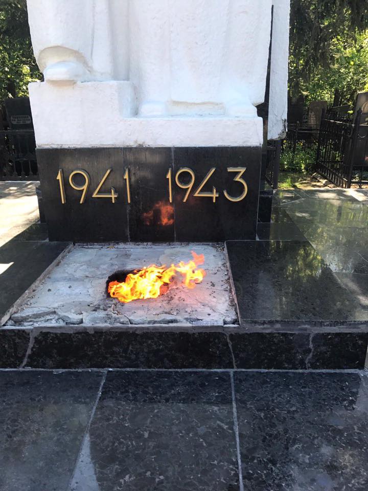 Вандалы разбили гранитные плиты на братской могиле советских солдат и унесли звезду весом около 40 килограммов. Подножье уже восстанавливают, сегодня же поставят и звезду, изготовленную по таким же размерам.
