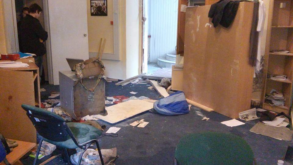 Разбитые окна, выбитые двери и разбитые в дребезги мебель. Так после вчерашних столкновений с полицией выглядит штаб ОУН на Киевщине. Как заявляют в "Добровольческом батальоне ОУН", госпитализированы оказались двое их собратьев.