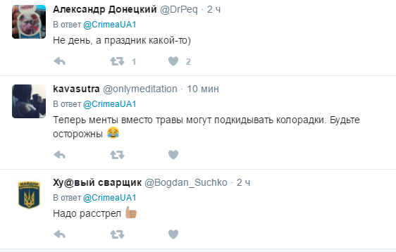 Россиян введение штрафов за ленту очень возмутило. Они начали бросаться в адрес Украины обвинениями в осквернении победы во Второй мировой и памяти ветеранов, хотя до середины 2000-х годов и в самой России никто полосатых лент не носил. А украинцы тем временем горячо поддержали законопроект Рады. Некоторые пользователи не стеснялись в выражениях.