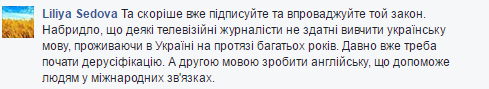 В комментариях украинцы поддержали Порошенко. Пользователи отметили, что для украинских журналистов позорно не знать государственный язык, и стране действительно необходима дерусификация. А вместо русского лучше было бы повсеместно внедрять английский язык.