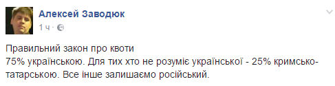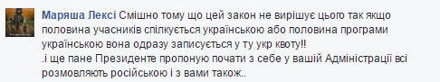 Советник главы МВД Зорян Шкиряк отметил, что в связи с принятием закона о языковых квотах «агентура Кремля в ВР Украины снова в состоянии психоза и паранойи».