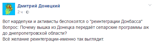 «Почему вышка из Донецка передаёт сепарские программы аж до Днепропетровской области?», «Сигнал днровского ТВ добивает аж до сел Запорожской области», - пишут возмущенные пользователи и интересуются, в чем должна заключаться деятельность министра информационной политики Юрия Стеця, если не в противодействии вражеской пропаганде.