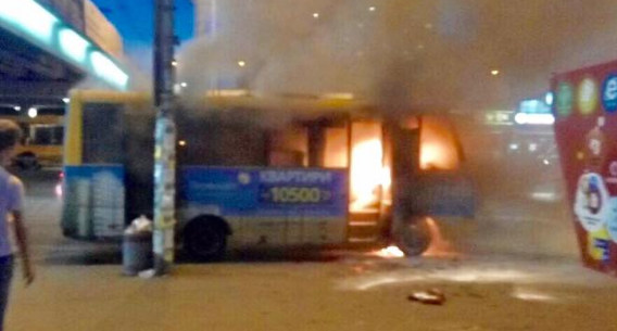 "Серьёзное возгорание маршрутного автобуса прямо сейчас на метро Харьковской. Предварительно, маршрут 311.