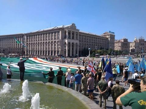 Сегодня, 13 июля, на Майдане Независимости произошло чрезвычайное событие - под звуки Гимна военнослужащие отдельного полка Президента Украины развернули самый большой в мире флаг Ичкерии.