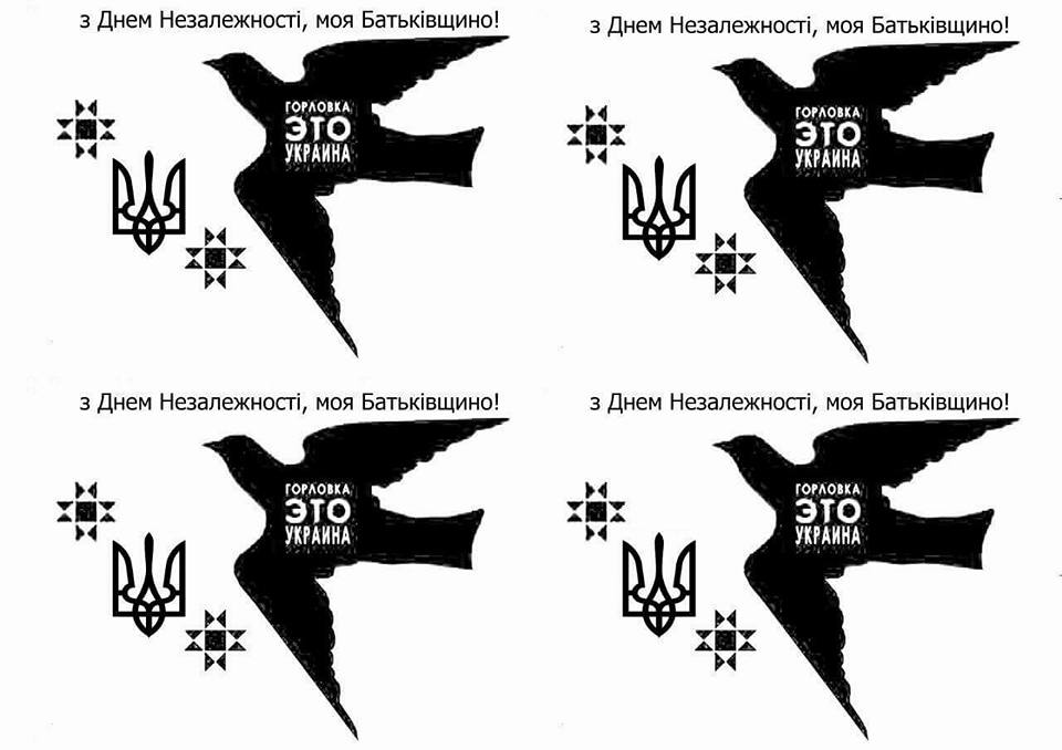 На наклейках надписи: "Горловка - это Украина" и "С Днем Независимости, моя Родина".