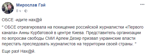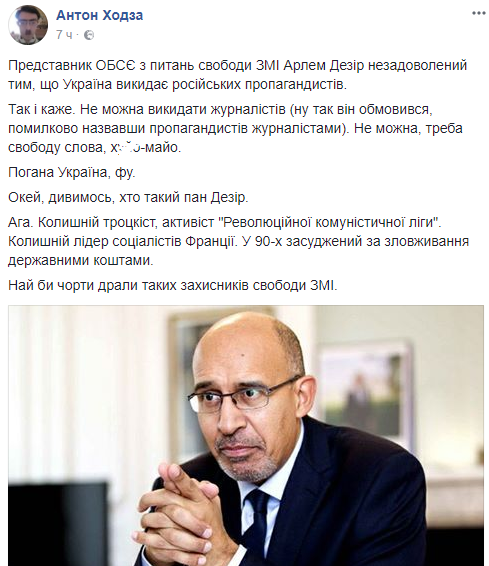 После истории с выдворением Курбатовой у нее нашлись защитники в ОБСЕ. Пользователей сети возмутили слова представителя миссии по вопросам свободы СМИ Арлема Дезира, который призвал власти Украины прекратить «преследование» журналистов.
