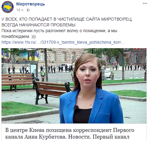 Стоит напомнить, что анкета Курбатовой содержится в базе сайта «Миротворец». На странице проекта в Фейсбуке вчера было опубликовано сообщение, что у пропагандистки начались проблемы именно из-за этого.