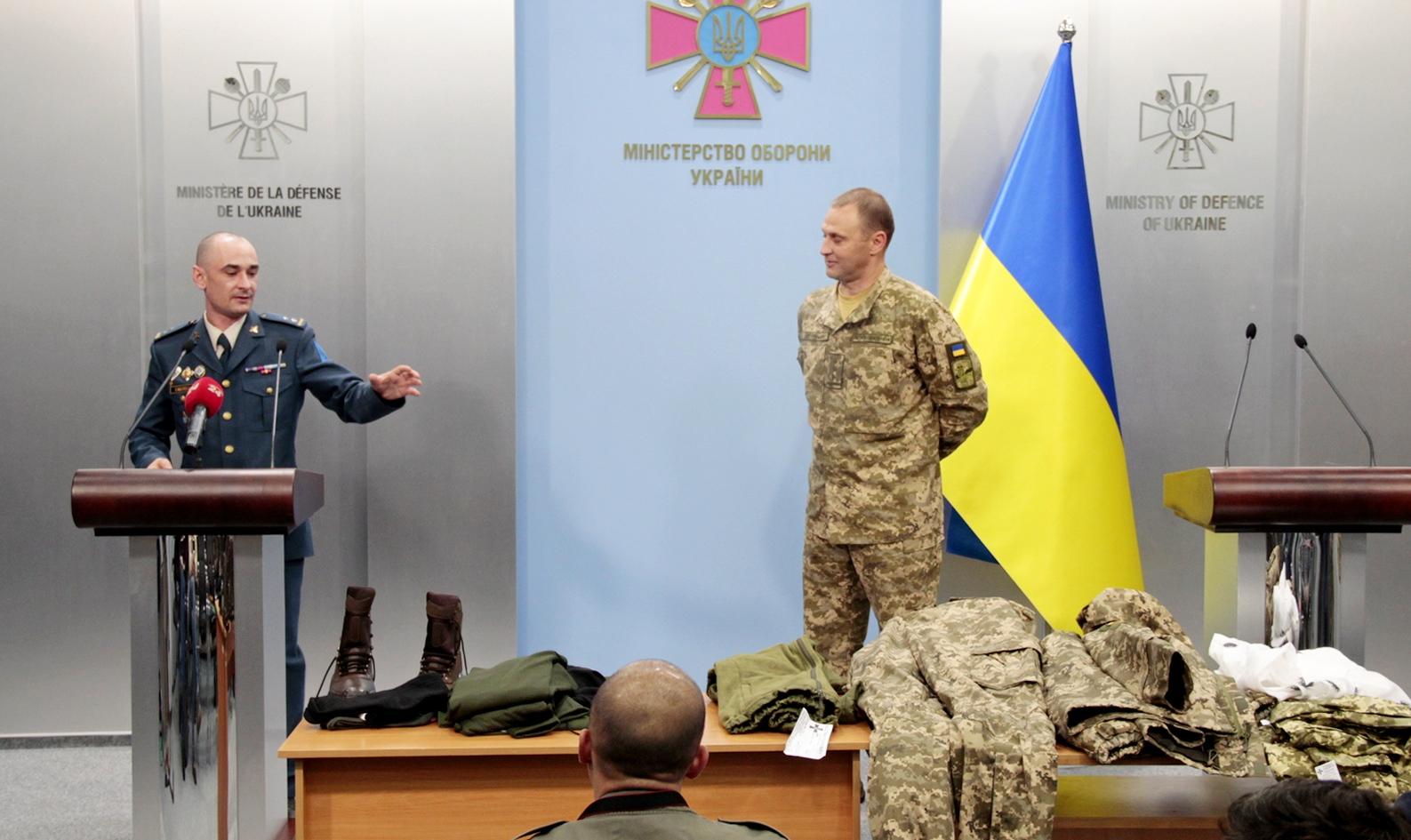Во время брифинга подполковник Василий Саковец продемонстрировал журналистам образцы зимней формы. Это, в частности, зимняя шапка нового образца, шапка-подшлемник, улучшенная зимняя и флисовая куртки, ветровлагозащитные штаны, демисезонное и термобелье, трекинговые (летние и утепленные) носки, зимние и демисезонные ботинки с высокими берцами, флисовые зимние рукавицы, "шарф-труба ", ветровлагозащитный демисезонный костюм, маскировочные костюмы белого цвета и тому подобное.