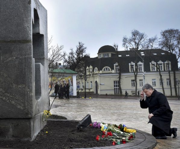 Память погибших в те страшные годы Петр Порошенко почтил встав на колено и минутой молчания.