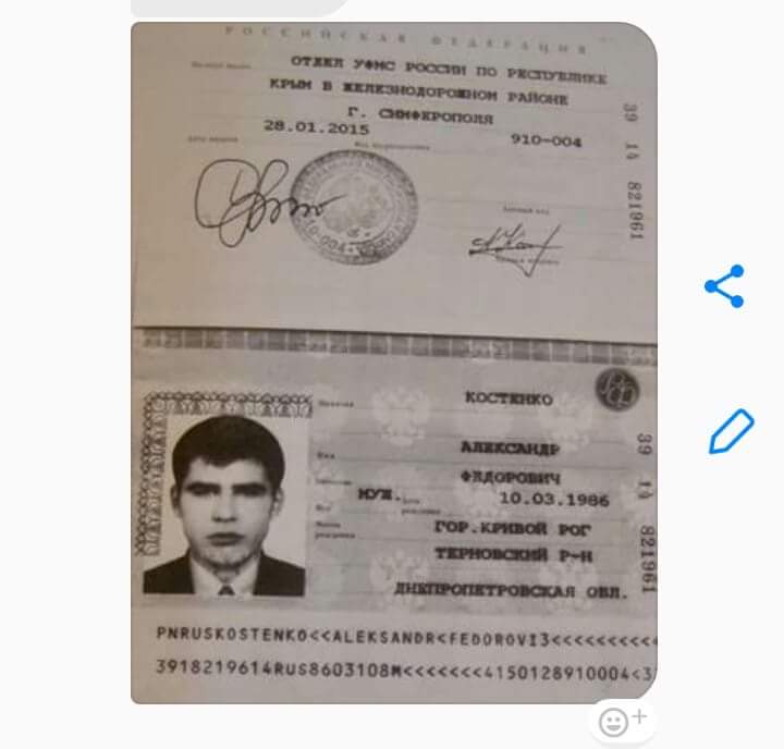 Он также добавил, что Костенко есть в базе "Миротворца", а россиский паспорт он получил в Крыму по собственному желанию до задержания.