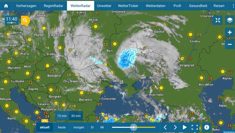 Температура еще достаточно низкая, +17+23 градуса, теплее будет завтра на востоке Украины - до +26 градусов.