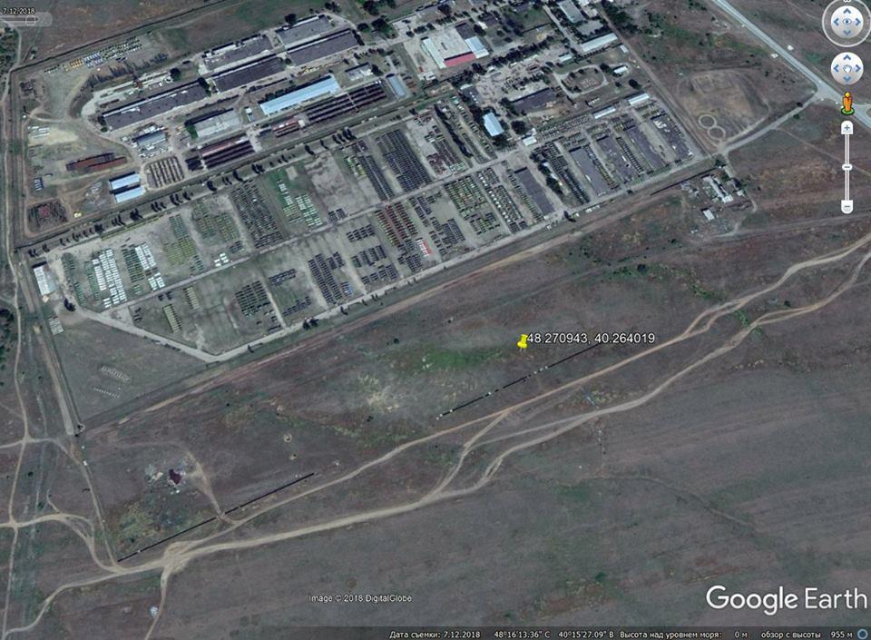 "Гугл-карты, координаты 48.270943, 40.264019, до границы всего 18 км (можете сами посмотреть и убедиться):