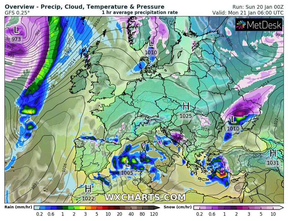Диденко обратила внимание, что в ночь на понедельник, 21 января, а также утром сильные осадки ожидаются на юге Украины, на востоке, в районах Кропивницкого, Днепра, Полтавы.