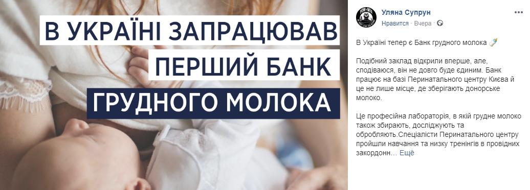 "К сожалению, многие матери отказываются от грудного вскармливания без надлежащих причин. Часто из-за мифов, как например то, что это больно или же молочная смесь такая же полезная, как материнское молоко. Не позволяйте дезинформации избавить вашего ребенка ценного ресурса для здорового развития" - рекомендовала Ульяна Супрун.
