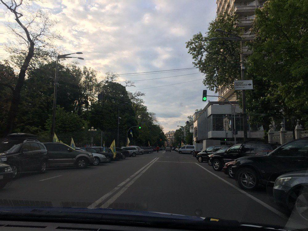 В связи с акцией осложнено движение на улице Грушевского. Как сообщили в столичной патрульной полиции, на участке дороги от перекрестка с переулком Виноградный до Кабмина движение осуществляется по одной полосе в каждом направлении. В результате блокирования участниками акции других полос движения возник затор.