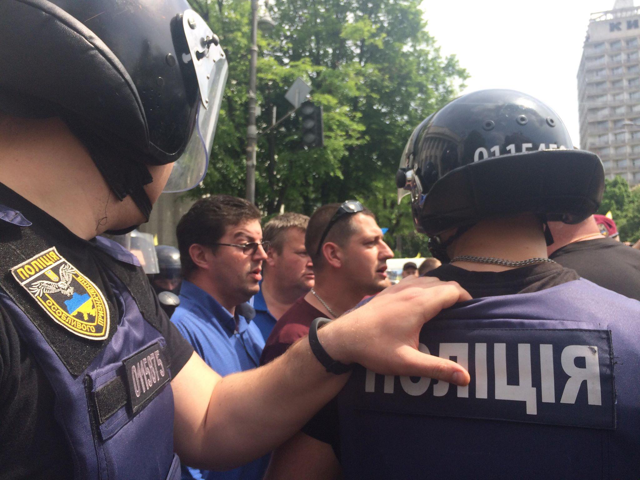 Столкновения произошли после того, как один из участников акции остановил свой автомобиль Renault на литовских номерах на проезжей части улицы Грушевского. Водитель включил аварийные сигналы и открыл капот, затрудняя автомобильное движение.