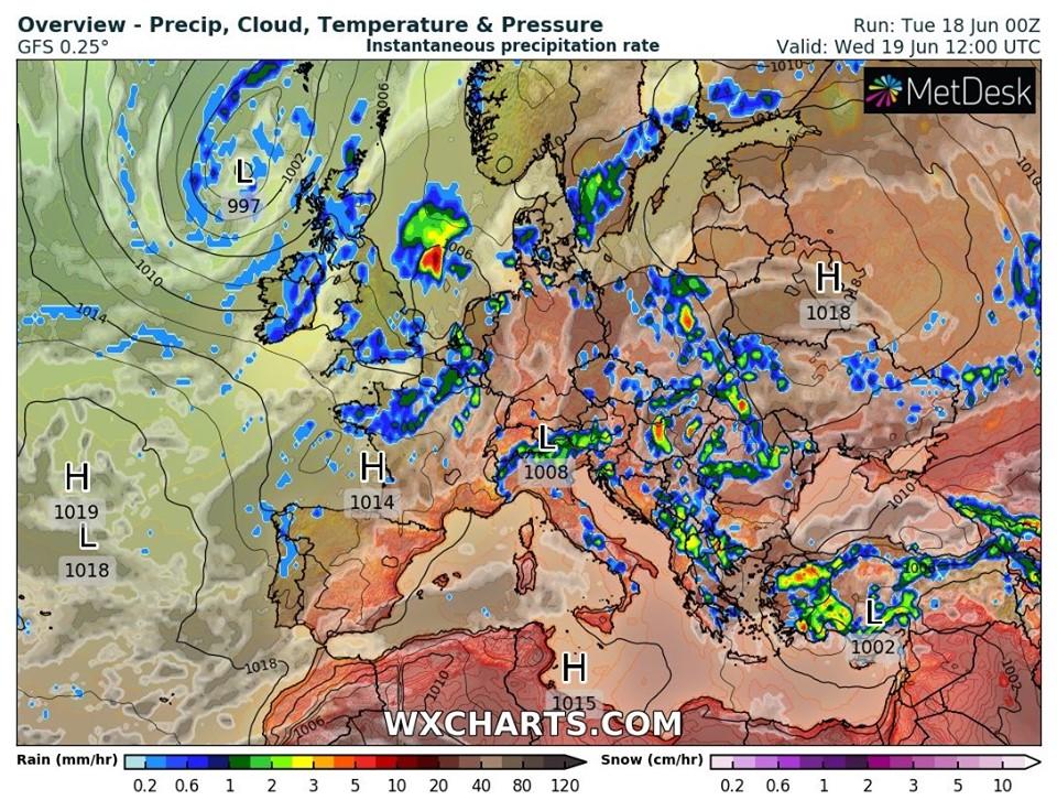 "19-го июня в Украине удержится жара. В течение дня предполагается +28+33 градуса, в западных областях +26+29 градусов.