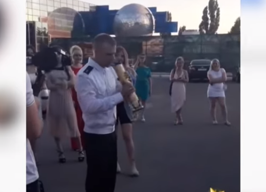 Кадры с мероприятия опубликовала в своем Instagram жена одного из выпускников. На кадрах видно, как новоиспеченные лейтенанты выпивают в форме и танцуют под песню про "российских офицеров". Дело происходило в харьковской воинской части 3005.