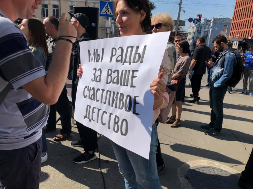 "Сегодня, 16 июля, мы пришли под стены Конституционного Суда Украины, чтобы высказаться против отмены декоммунизации и напомнить судьям КСУ, что сознательные украинцы радуются «за чье-то счастливое детство», но не хотят повторения кровавого коммунистического режима", - говорится в публикации.