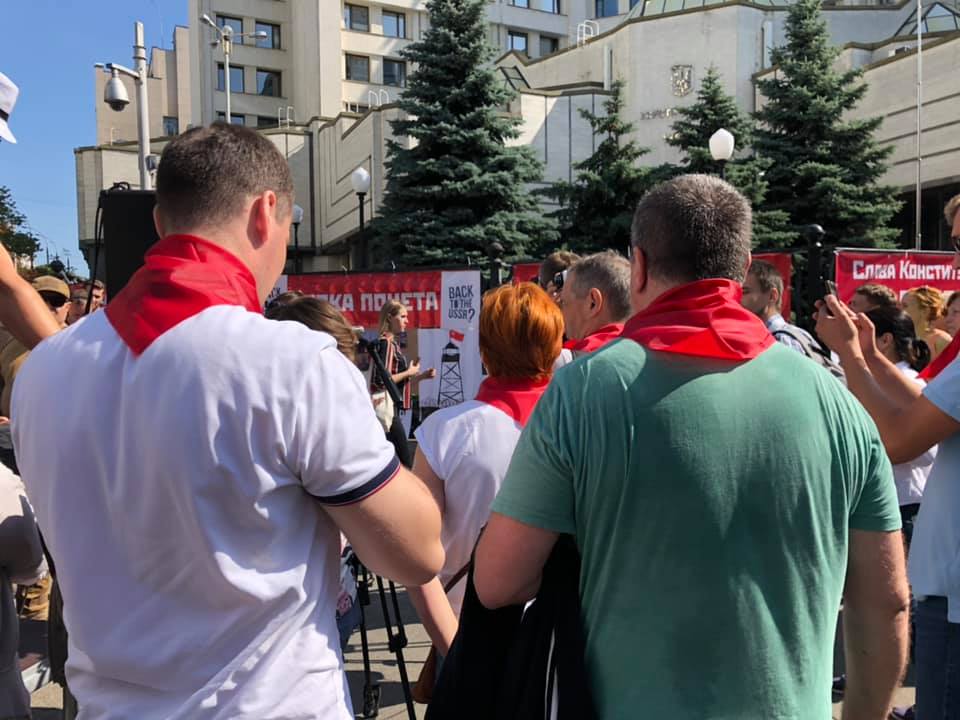 Сообщается, что мирная акция длилась полчаса. Участники митинга развесили баннеры и плакаты против отмены декоммунизации. Под стенами КСУ раздавали «пионерские галстуки», которые затем символически повязали на забор Конституционного Суда Украины.