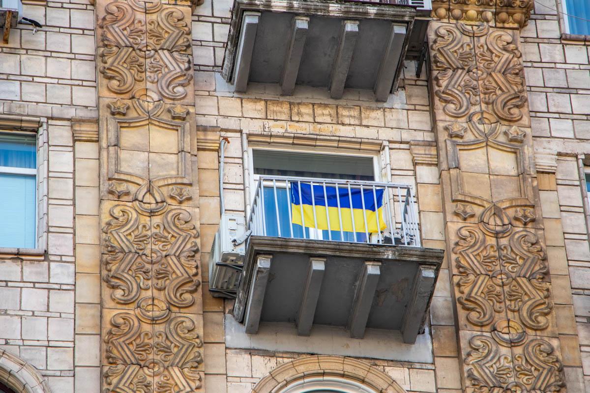 Флагов в центре столицы действительно очень много, ими украсили госучреждения, магазины и балконы жилых домов.