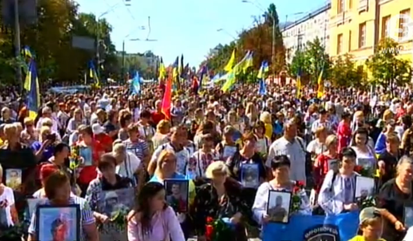 Сегодня, в День Независимости, после Шествия достоинства в Киеве проходит Марш защитников Украины, организованный оппозицией.