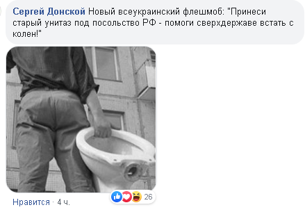 Пользователи сети высмеяли ситуацию с кражей унитазов с кораблей: Новый всеукраинский флешмоб: “Принеси старый унитаз под посольство РФ - помоги сверхдержаве встать с колен!”