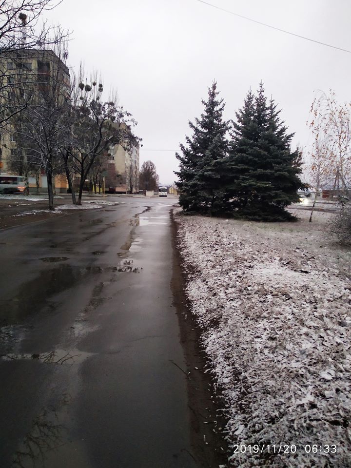 На Луганщине первый снег выпал еще на прошлой неделе. Правда, сразу же растаял. Тем не менее, в Лисичанске ранним утром 20 ноября можно было увидеть припорошенные снегом улицы.