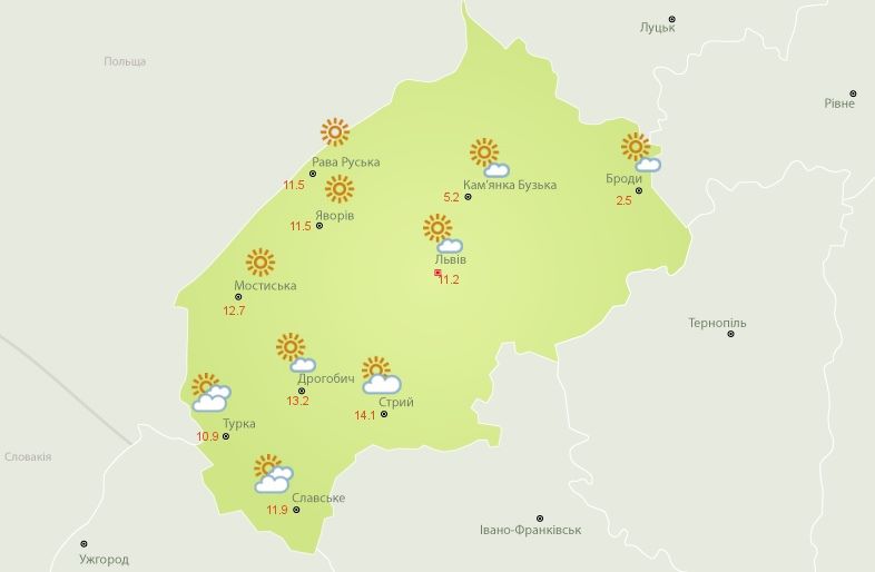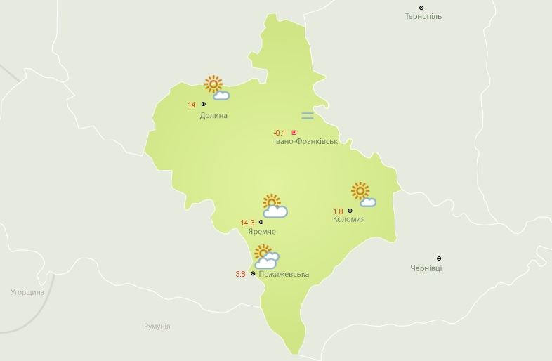 Синоптик привел температуры, зафиксированные на метеостанциях в Карпатах на 5 часов утра 18 декабря: Яремче +14,3, Стрий +14,1, Долина +14,0, Дрогобич +13,2.