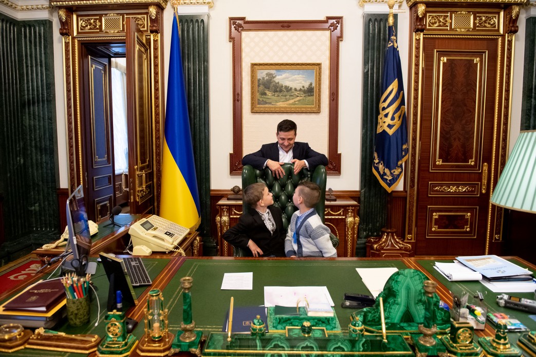 Президент пригласил детей в свой кабинет, чтобы показать, где и как он работает. Особенно ребят заинтересовало кресло главы государства. Дети расспрашивали Зеленского о его опыт съемок в фильмах, а также о том, трудно управлять страной.
