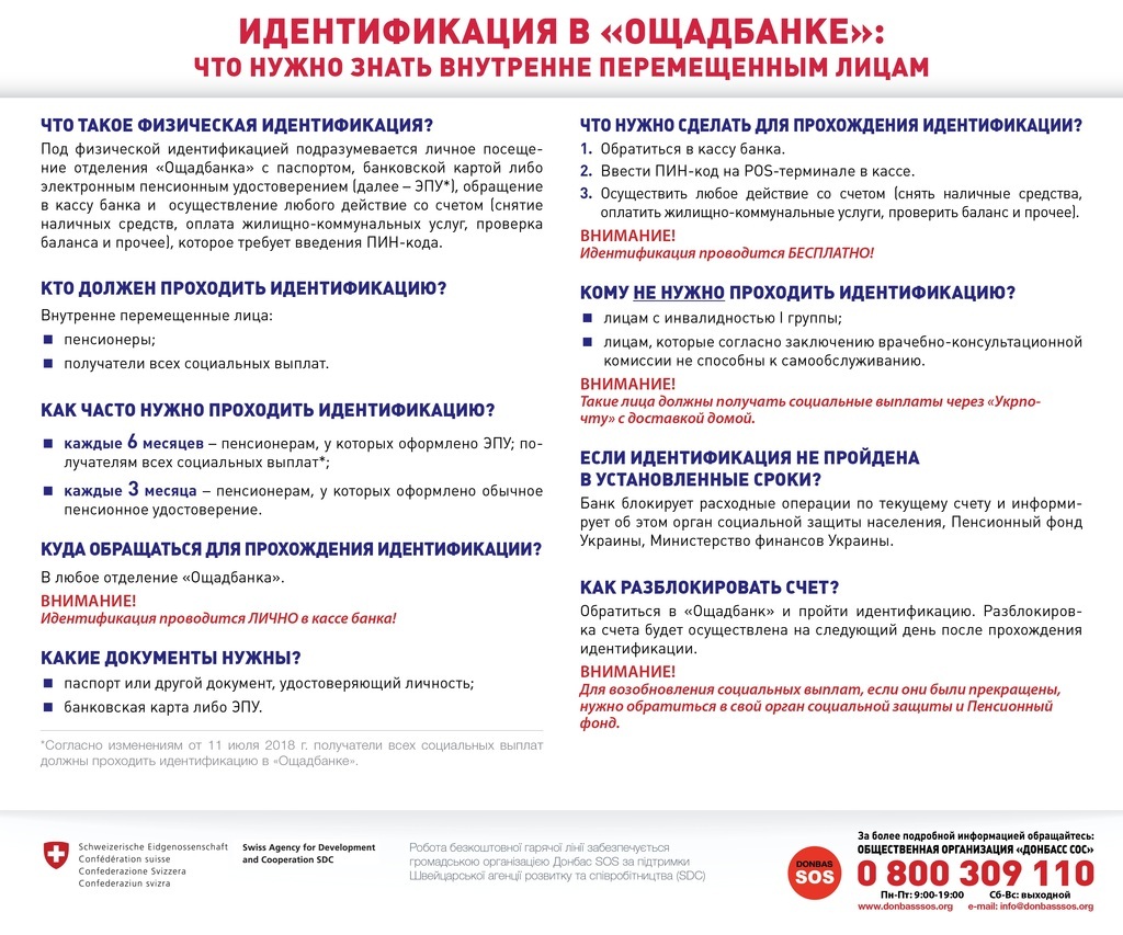 Прохождение идентификации, в свою очередь, предусмотрено только для получателей пенсии и социальных выплат с числа внутренне перемещенных лиц. Идентификацию человек проходит самостоятельно в кассе "Ощадбанка".