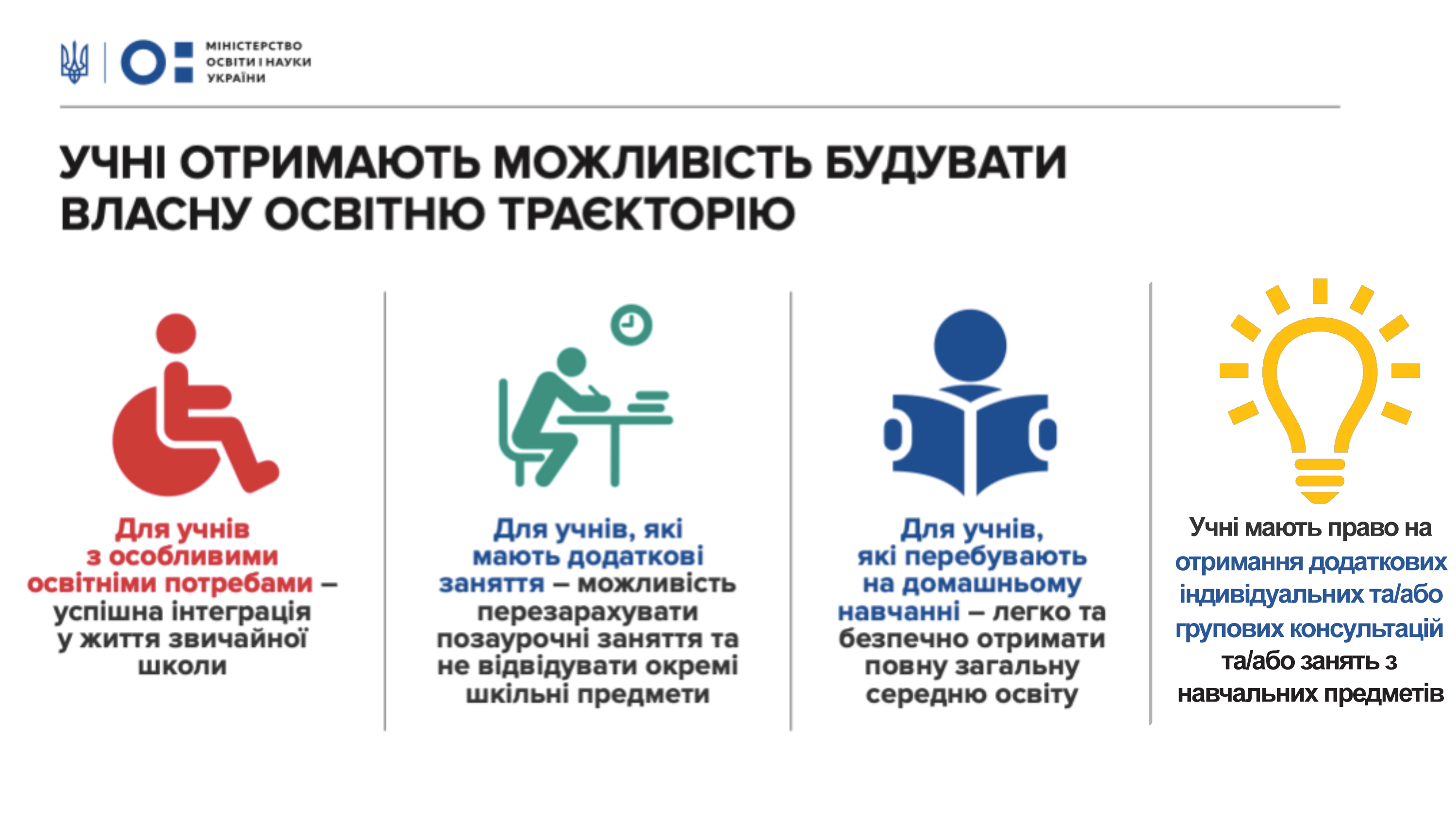 Также меняется продолжительность уроков. Урок для первоклашек теперь не должен длиться больше 35 минут, 2-4 классы - до 40 минут. Меняется и необходимое количество учеников для комплектации класса. Теперь достаточно 5 детей. Законом предусмотрена, помимо указанного, педагогическая интернатура, контракты для директоров и учителей на пенсии, ученическое самоуправление, возможности для создания настоящей старшей профильной школы, возможность для учащихся выбирать свою образовательную траекторию, финансовая автономия школ, больше возможностей для профессионального роста и увеличения зарплат учителей.