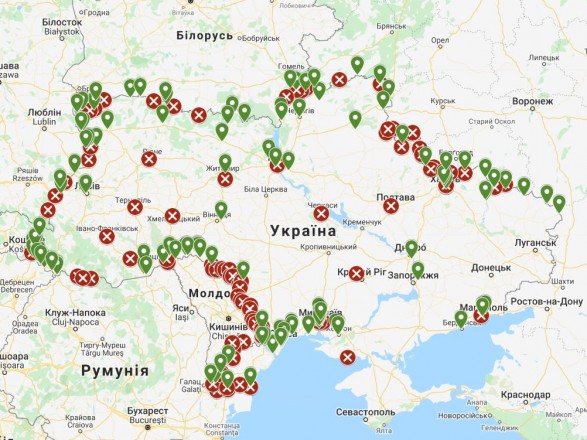 В Украине появилась интерактивная карта работы пограничных пунктов пропуска во время карантина из-за коронавируса COVID-19.