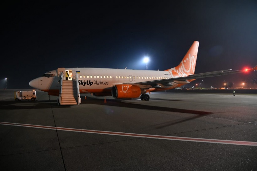 В аэропорту "Борисполь" приземлился самолет авиакомпании SkyUp, который выполнял спецрейс в Италию для эвакуации оттуда граждан Украины.