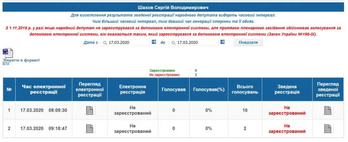 В качестве доказательства депутат выложил скрин-шот с сайта Рады, на котором видно, что 17 марта он в парламенте не регистрировался.