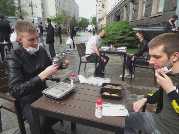 Как сообщают украинские СМИ, на Банковой собрались рестораторы Киева с требованием разрешить открыть летние террасы во время карантина. У здания правительства активисты расставили столики, устроив таким образом импровизированную летнюю площадку, передает Час Пик.