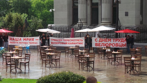 Один из организаторов акции, ресторатор Дмитрий Федотенков рассказал, что их главная задача - побудить власти пересмотреть карантин и разрешить работу летних площадок, что позволит восстановить 200000 рабочих мест в сфере общественного питания по всей стране.