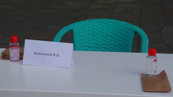 За столики могли сесть все желающие, им бесплатно раздавали котлеты с гречкой, было и именное место главы государства Владимира Зеленского.