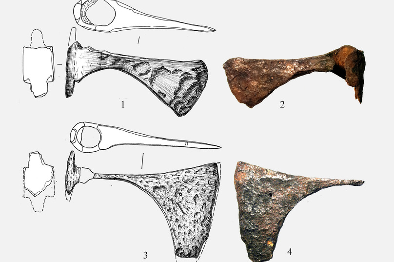 В мужских захоронениях было выявлено оружие: топоры, копья, дротики-сулицы. Это оружие ближнего боя использовалось пешими воинами, которые, вероятно, преобладали вреди тех, кто хоронил в этом некрополе своих собратьев. В пользу этой версии свидетельствует то, что в могильнике захоронены в основном молодые люди, возрастом в среднем 35 лет, детских захоронений там очень мало.
