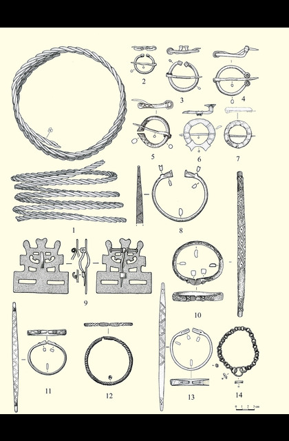 Сообщается, что захоронения осуществлялись по обряду ингумации (трупоположения), тела клали головой на север. В некрополе были обнаружены находки, характерные для балтов - шейные гривны, браслеты, цепочки, застежки-фибулы, кольца.