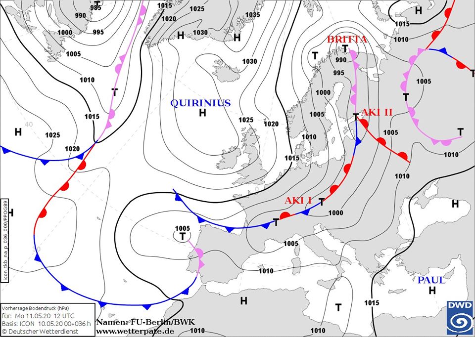 Но, по словам Диденко, 12 мая к нам придет холодный атмосферный фронт, который принесет дожди (на Западе иногда даже мокрый снег), похолодание, штормовой ветер.
