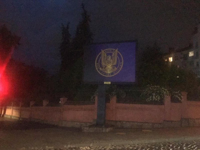 У российского посольства в Киеве и консульств в Одессе и Львове появились билборды с гербом контрразведки Службы безопасности Украины. А на стене дома возле российского консульства в Харькове нарисовали целый патриотический мурал.