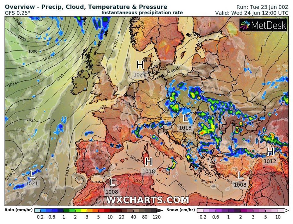 По ее словам, 24-го июня температура воздуха снизится до +23 +27 градусов. На Западе по-прежнему будет свежее, +20 +25 градусов. Только юг и юго-восток будут держать традиционную географическую градусную марку, +26 +30.